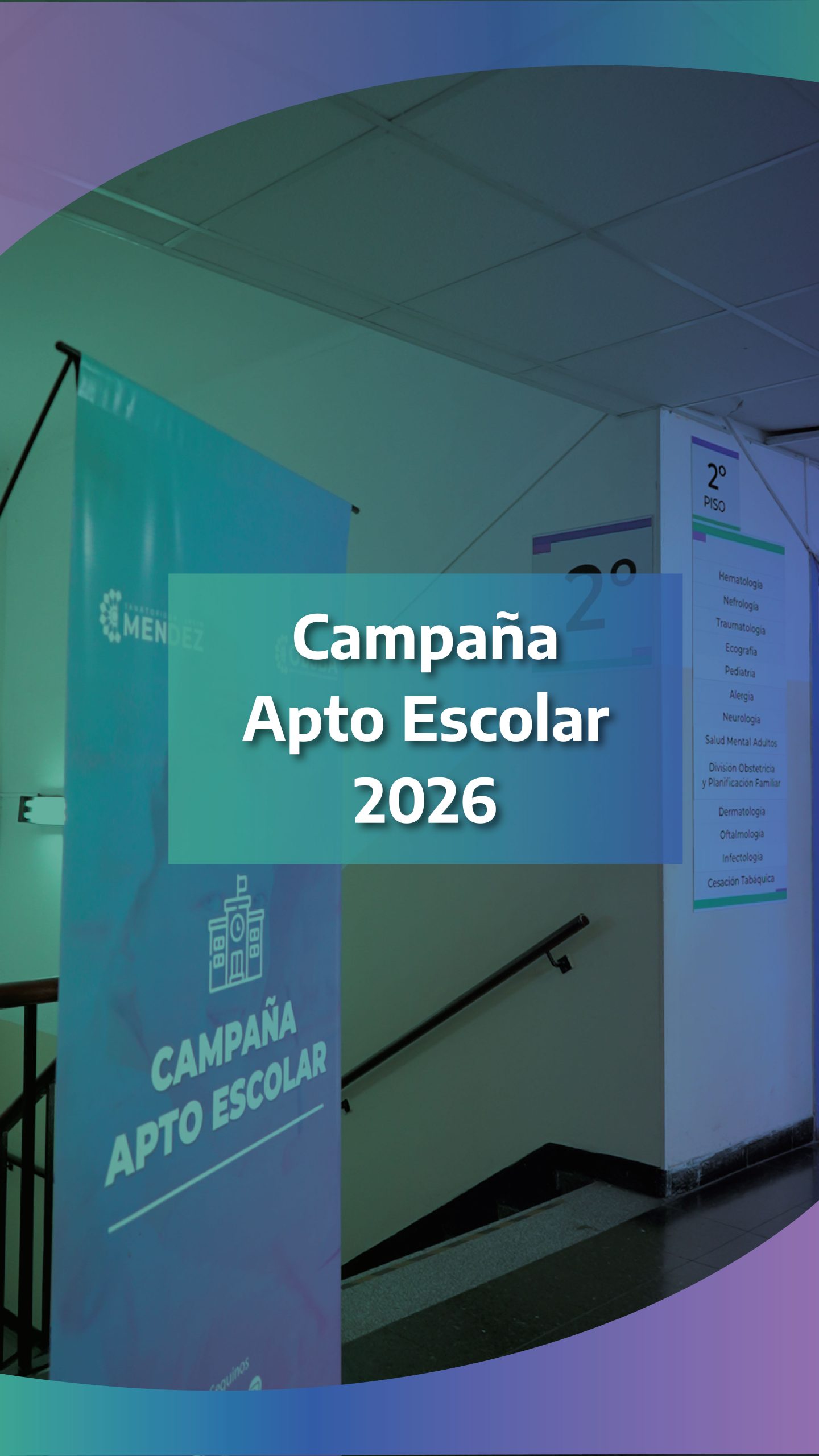 Del 2 al 31 de marzo, realizaremos la campaña de aptos escolares en el Sanatorio Dr. Julio Méndez, para niñas, niños y adolescentes de 5 a 17 años y 11 meses.